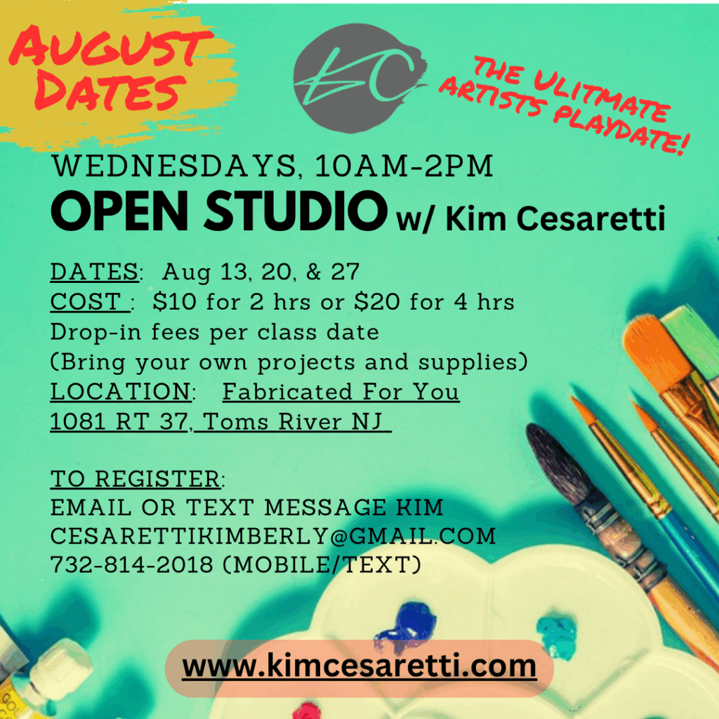 Join us the for ultimate artists play date! $10 for 2 hours or $20 for 4 hours (drop-in). Bring your own projects and supplies. Contact Kim for more information and to reserve your spot. Payment via cash or Venmo on day of attendance. Thanks!